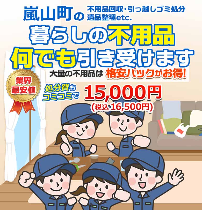 埼玉県嵐山町(杉山・川島・志賀など)で不用品・粗大ゴミでお困りなら便利屋「べんりやハッピー」。引越し時のゴミ、大型家具や電化製品、ごみ屋敷、不動産業者様の物件の残置物など、便利屋の当社が様々なケースに対応。