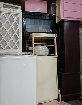 プラスチックタンス、ダイニングテーブル、イス、大型家具 ガスコンロ、ステンレスラック、レンジ台、ベッド、冷蔵庫、 洗濯機、リサイクル家電、ダンボール、布団、雑誌、その他。